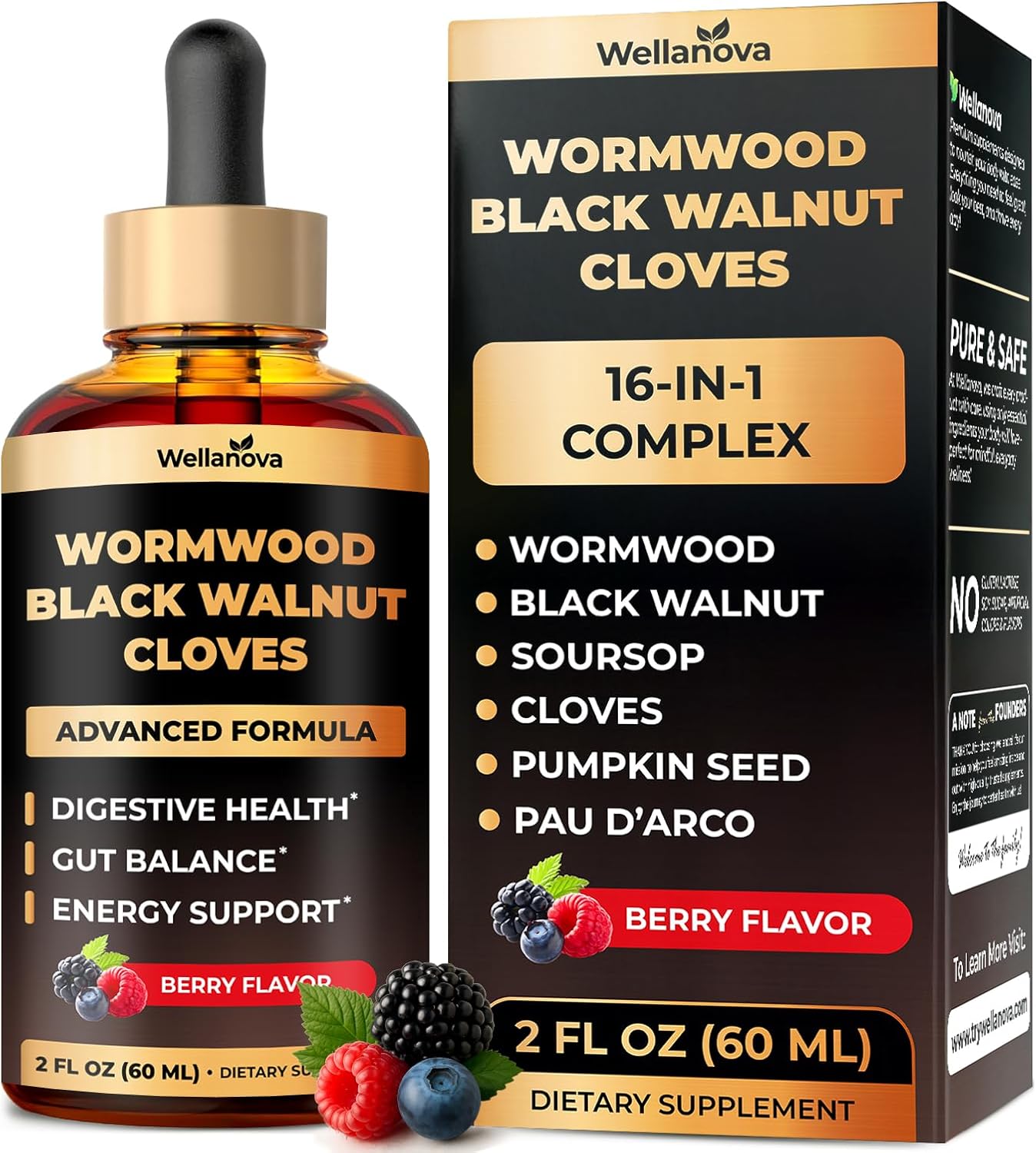 • 16-IN-1 BOTANICAL LIQUID FORMULA – Combines wormwood, black walnut, clove, and 13 additional herbs to support full-body cleansing and digestive clarity.